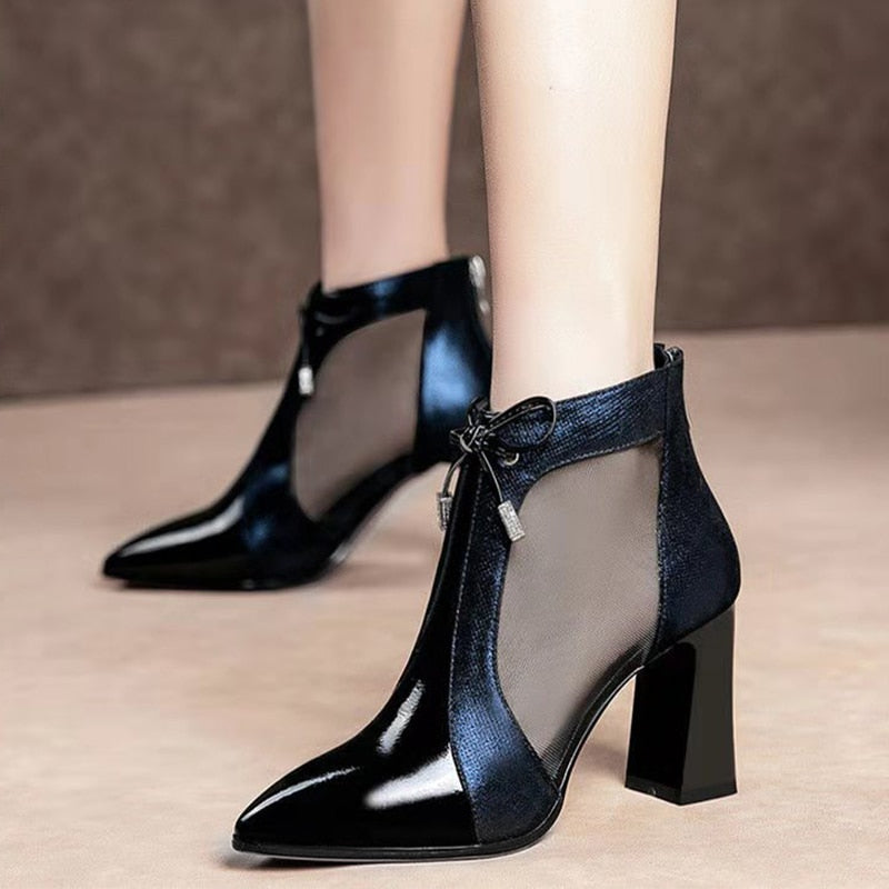 PU Leather Butterfly Decoration See Through Ankle Boots