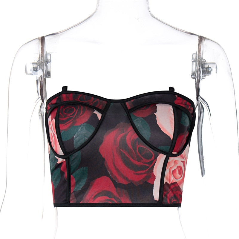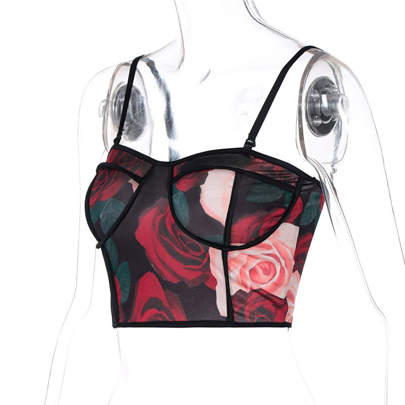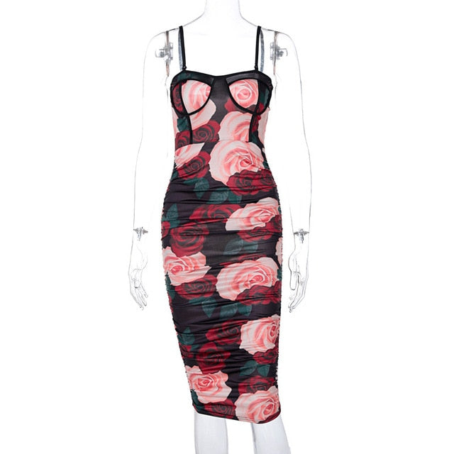 Flower Pattern Polyester Tank Top, Long Sleeve Mini Dress, Bodysuit, and Sleeveless Midi Dress