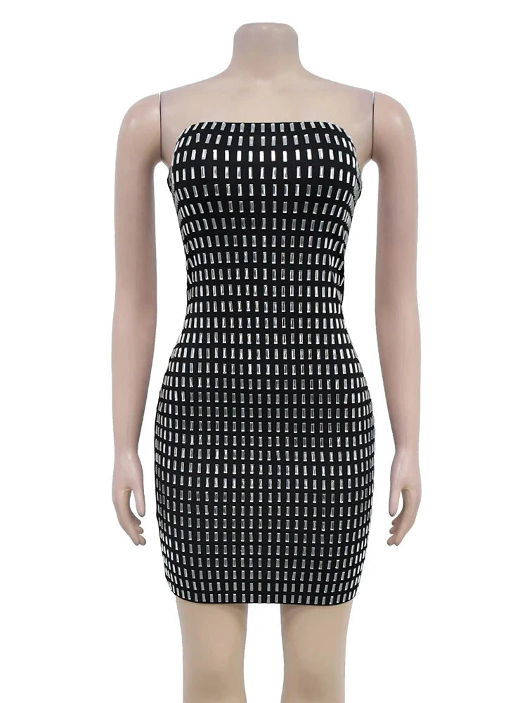 Introducing the Standing In The Storm Mini Dress! This elegant sheath dress boasts a stunning rhinestone decoration and a flattering slash neckline. Made with high-quality polyester, it's the perfect choice for any special occasion. Show off your silhouette with confidence in this above-the-knee mini dress.