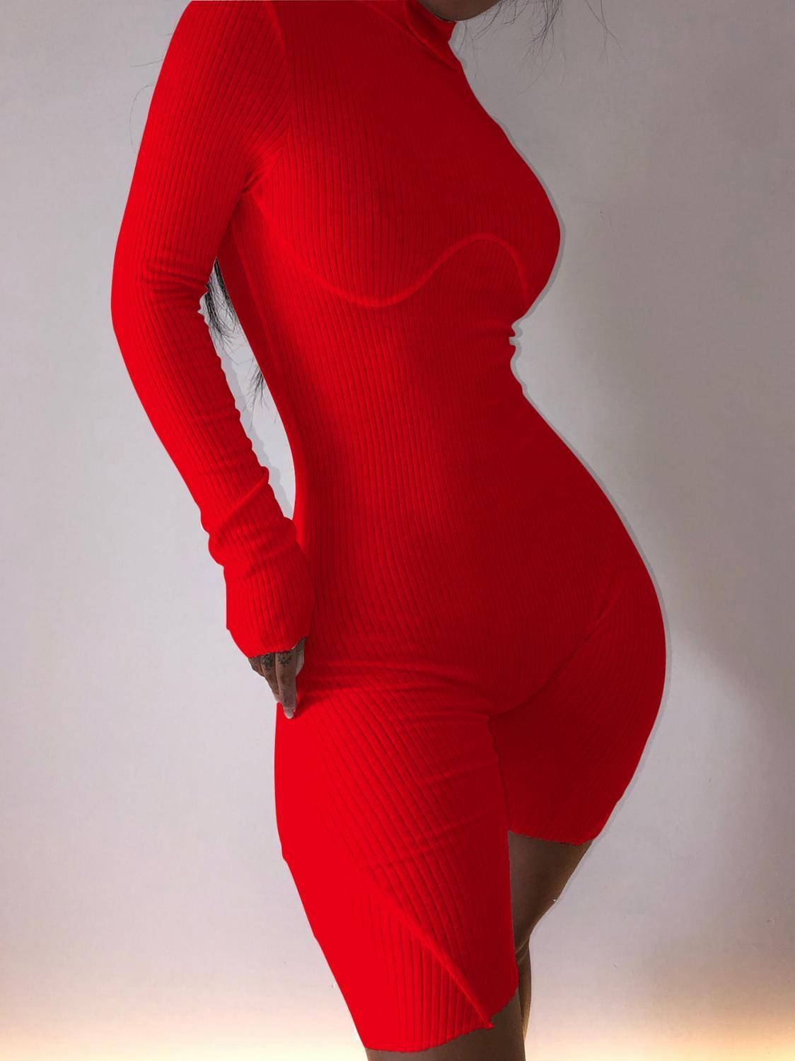 The most comfortable romper you will ever wear. This romper has a stand collar and is made of cotton spandex material. It fits like a second skin and the stand collar adds a stylish touch to this adorable romper.