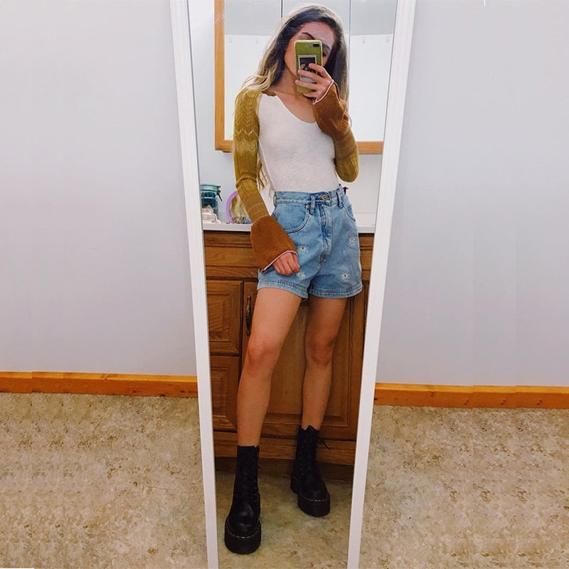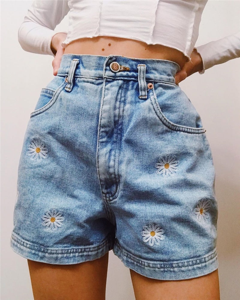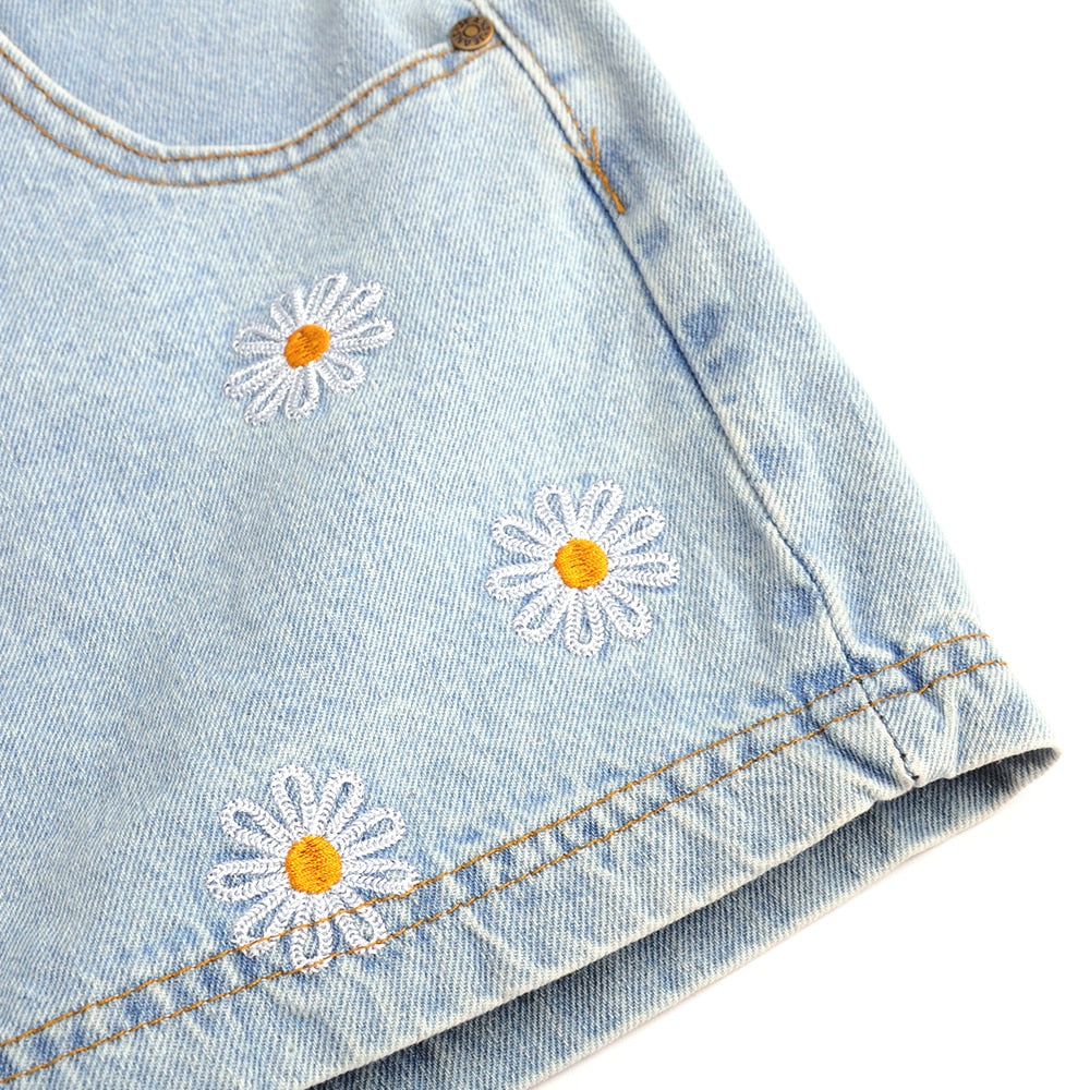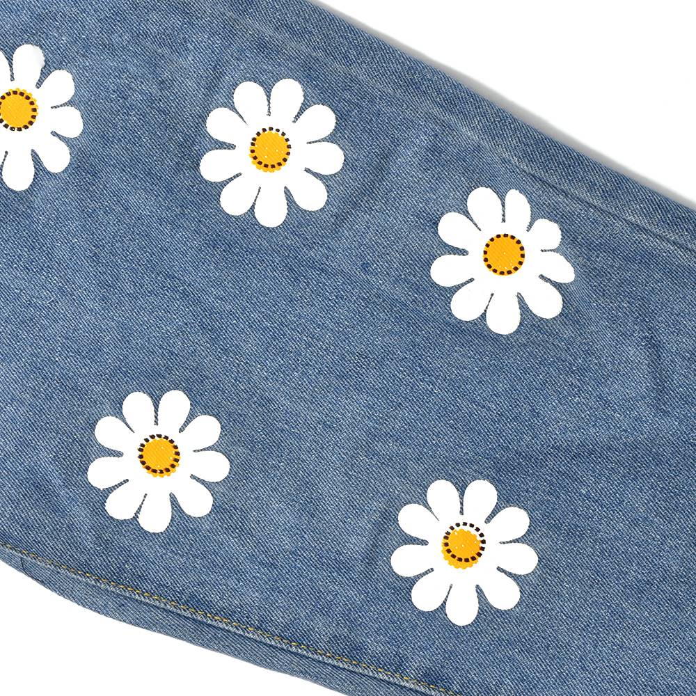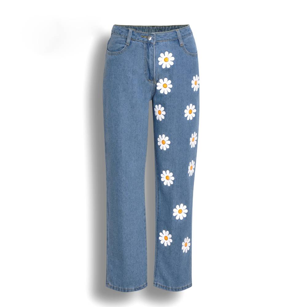 Daisy Flower Pattern JeansWith Zipper Fly Closure, Cotton Polyester Material, And Stripe Fabric Type