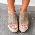 Microfiber Wooden Decoration Wedges Heels Sandal