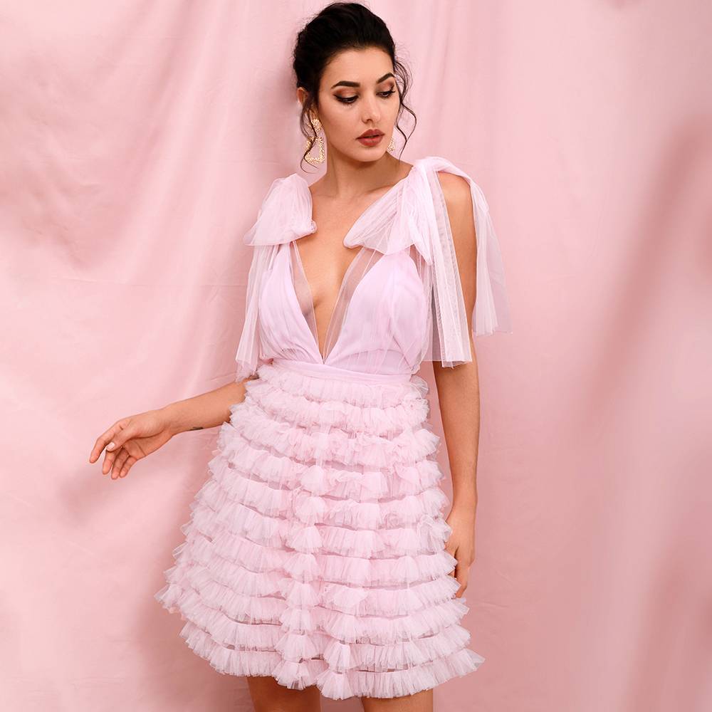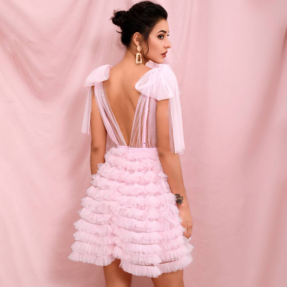 Polyester Spandex V-Neck Sleeveless Mini Dress