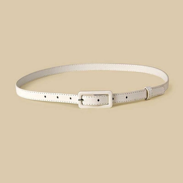 Solid Faux Leather Belt with Rectangular Buckle Style