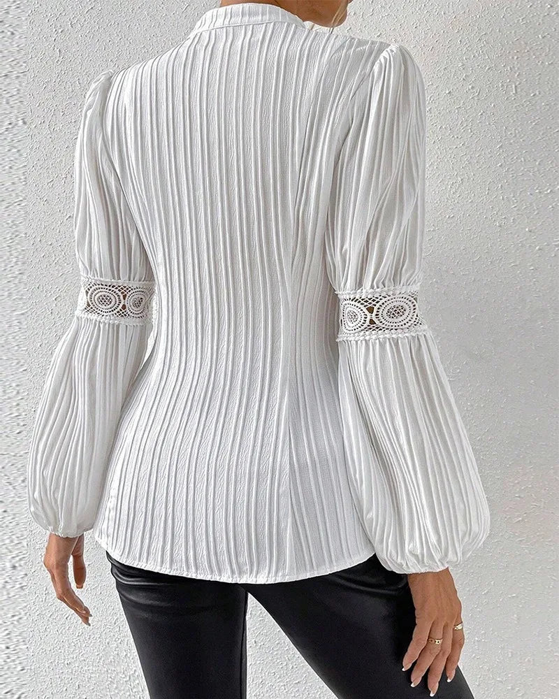 Indulge in elegant femininity with our blouse! Crafted with a solid polyester material, this blouse is both lightweight and durable. The hollow-out design adds a touch of allure, making it perfect for any occasion.