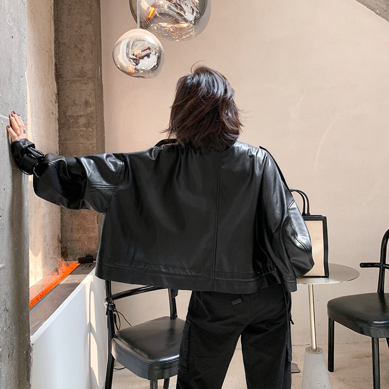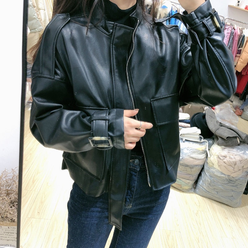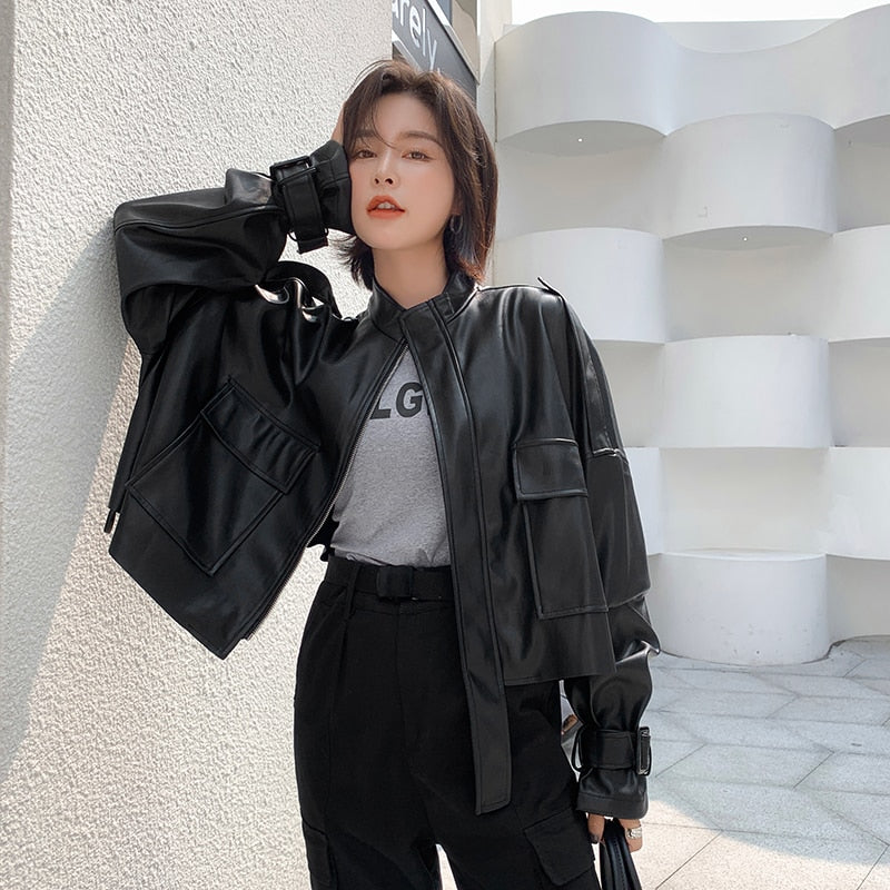 This stylish and classy jacket is made of faux leather and features a stand collar and zipper closure. A stylish and versatile piece, this jacket can be worn on its own or tucked into a pair of jeans.