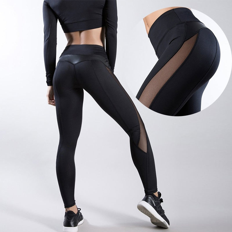 Striking and stylish, these women's leggings have a trendy, see-through design that shows off their fitness-enhancing fit. You'll love the way they look and feel. These leggings can be pulled on and off easily thanks to their top-notch construction. They have a spandex construction that makes them extremely comfortable to wear.