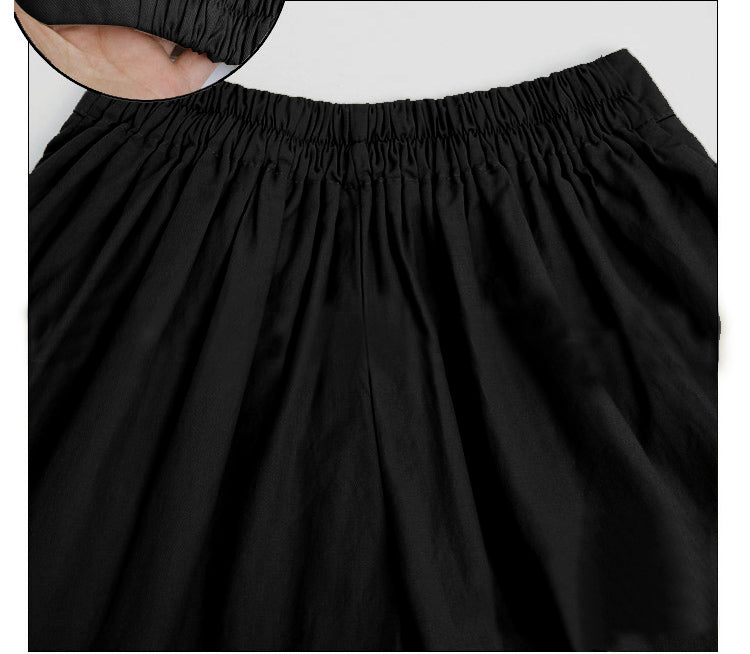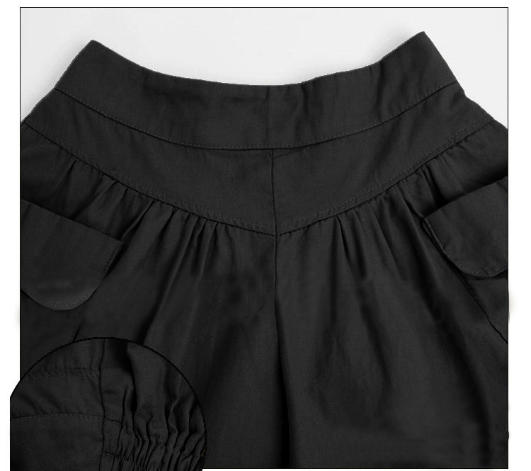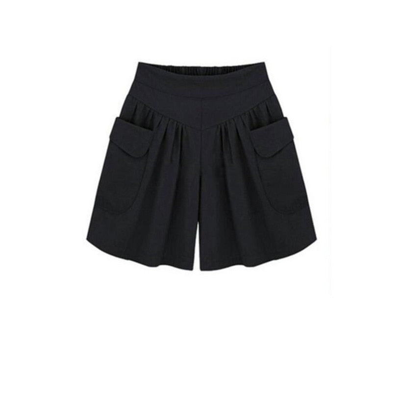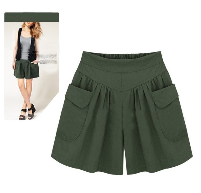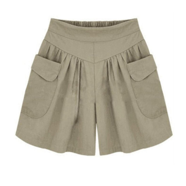 Solid High-Waisted Cotton Polyester Spandex Shorts with Side Pockets