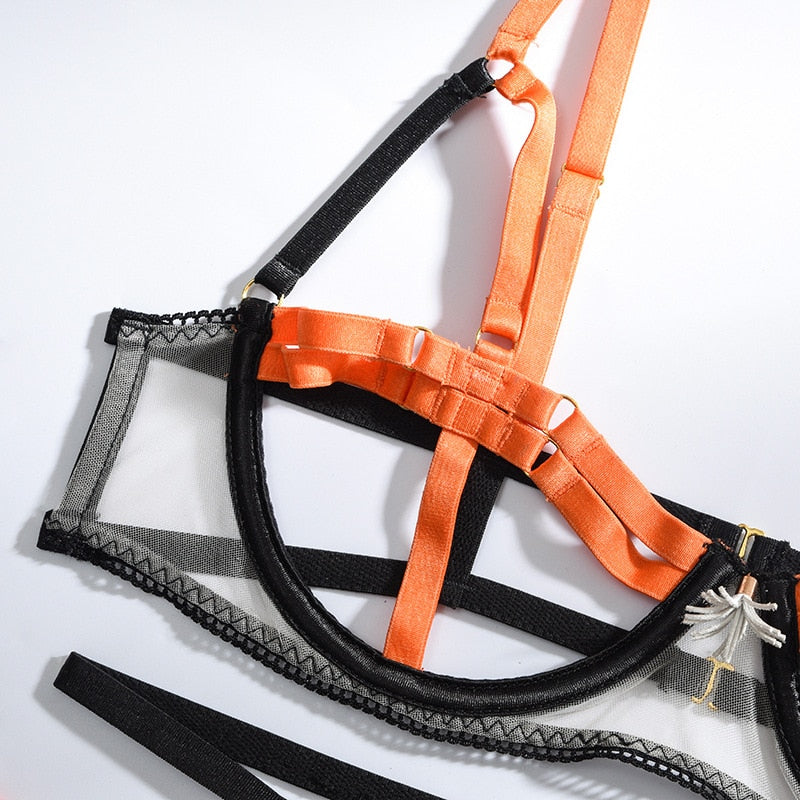 Adjustable Straps Lingerie Sets with Tassel Decoration and Polyester Blend Material