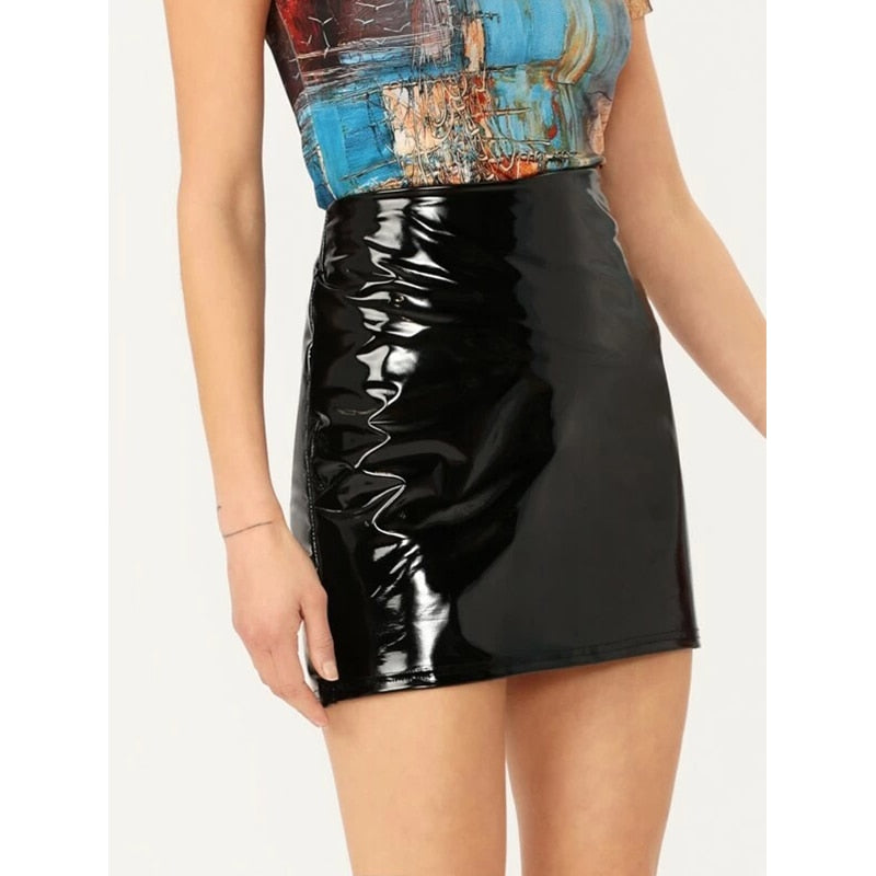 This classic skirt is crafted from a high-quality faux leather material, for a look that blends sophistication and durability. Its solid color and discreet zipper provide a timeless yet modern aesthetic to the fashionable off-style piece.