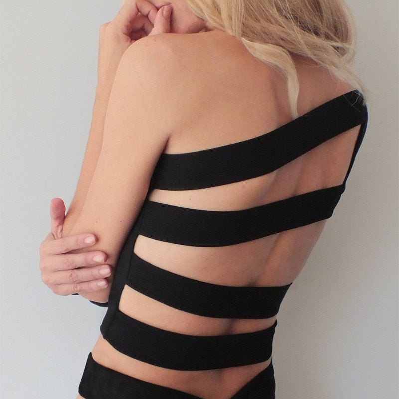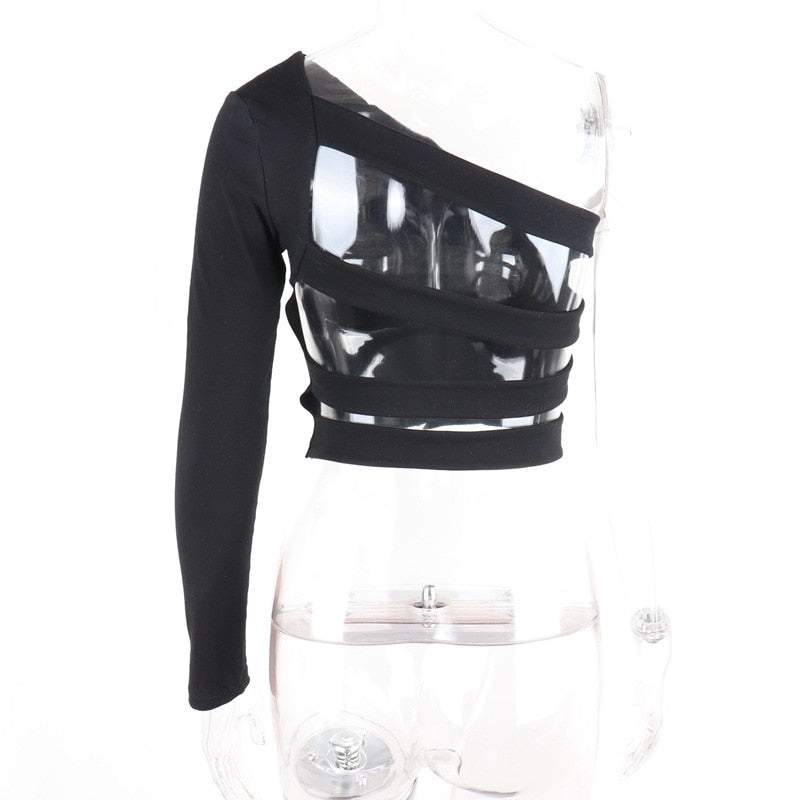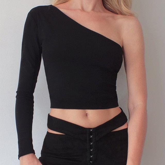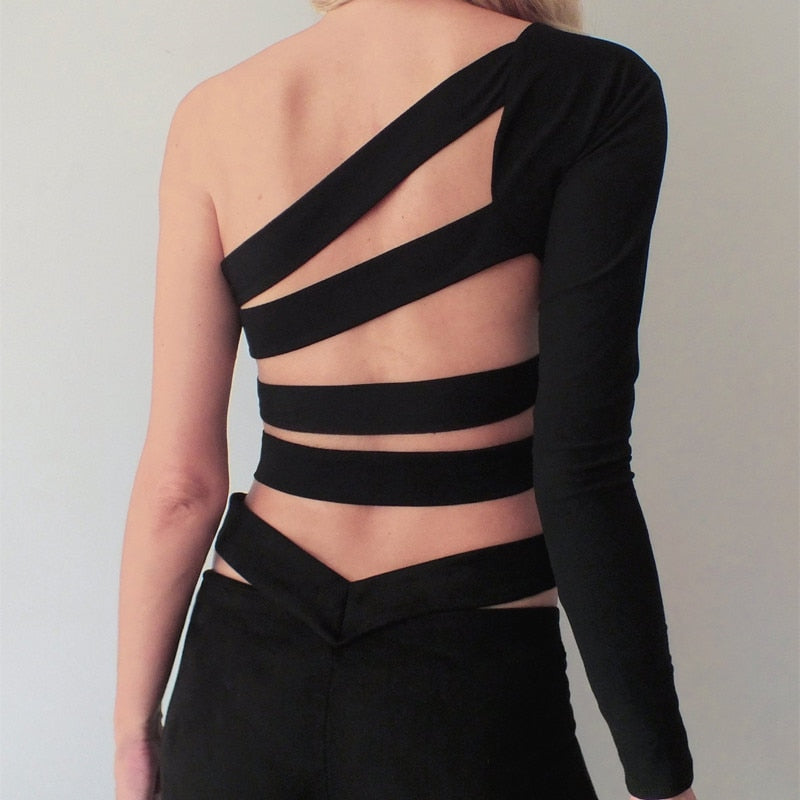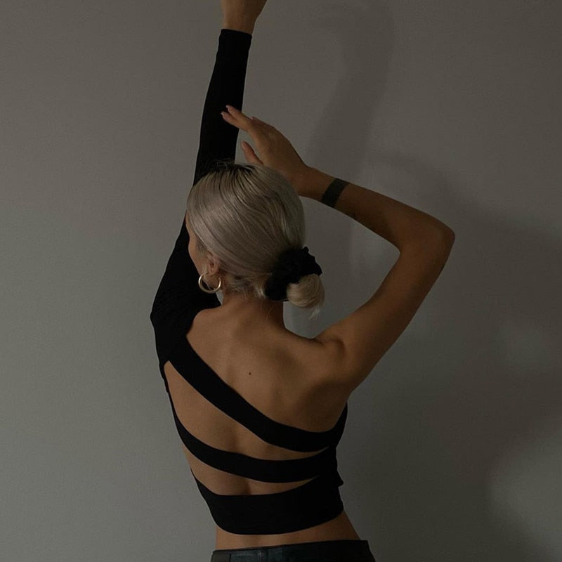 Backless One-Shoulder T-Shirt with Polyester Material