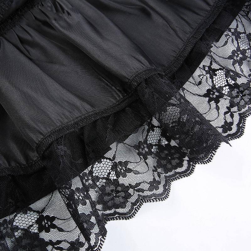 Solid A-Line Low Waisted Mini Skirt with Bow and Lace Decoration