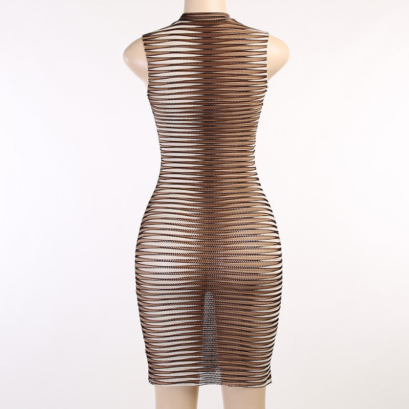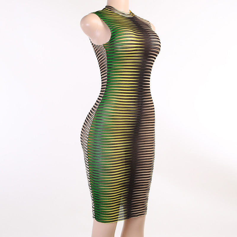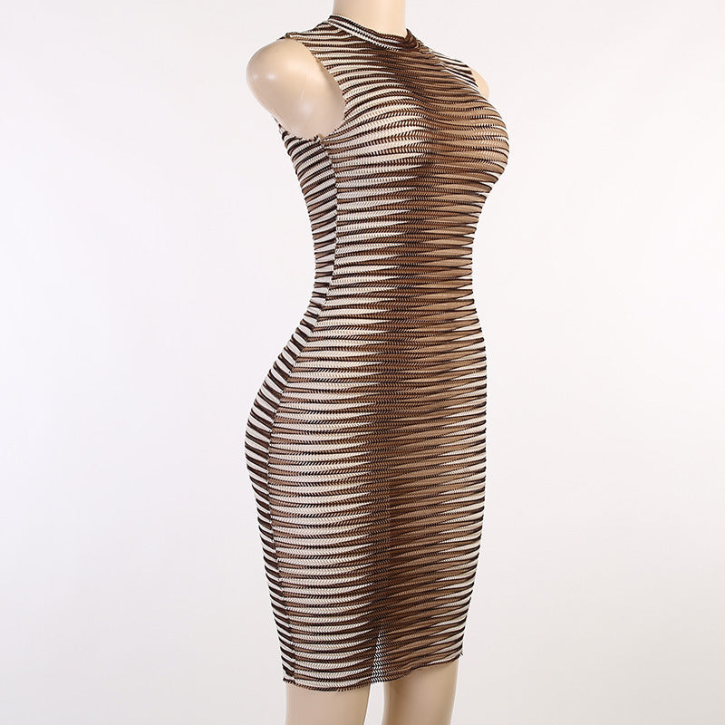 Sleeveless Polyester Spandex Mini Dress with Geometric Stripe Style