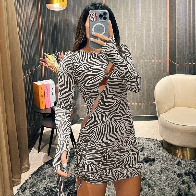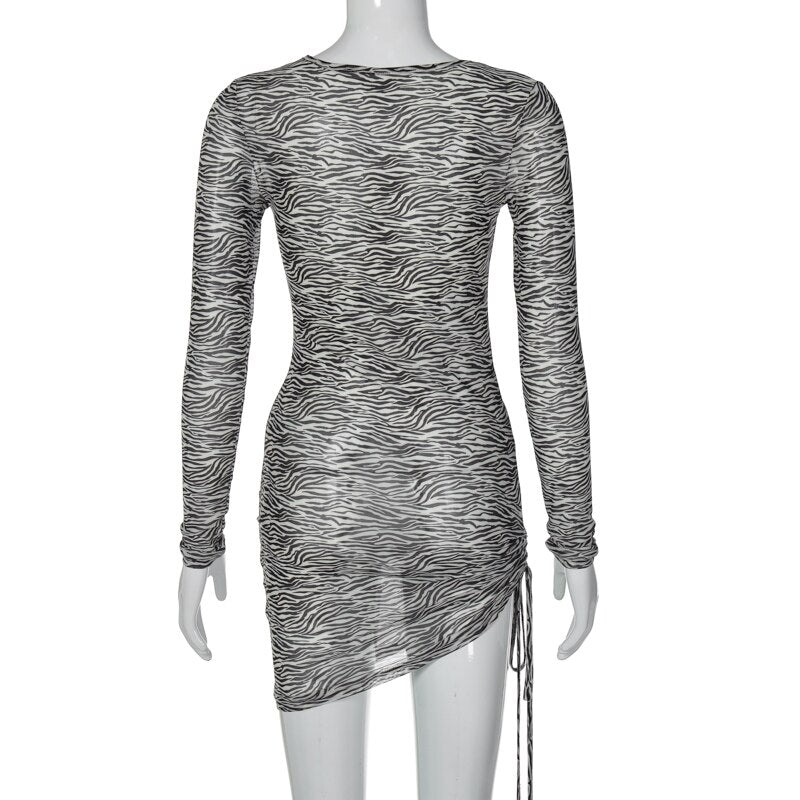 Say goodbye to boring dresses with the Wave Them Good Bye Mini Dress. Loaded with features, this O-Neck mini dress is made of a sleek combination of Polyester, Spandex, and Mesh materials. The pattern is an eye-catching zebra print, and the fit is slim. Along with the Hollow Out detail, the Full Sleeve and Lace Closure are stylish accents. Make a lasting impression with this casual above-knee length dress.