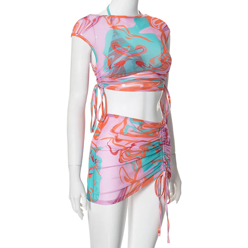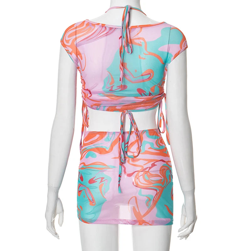 Get ready for a memorable night out with our What To Do Tonight Skirt Set! This eye-catching ensemble features a comfortable O-Neck collar and a convenient pullover closure. The playful print and flattering sheath silhouette add a touch of excitement, while the mini skirt length showcases your legs. Elevate your evening with this must-have set!
