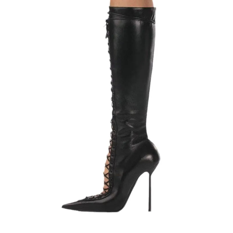 Indulge in trendy comfort with Whiskey And Ribbons Knee High Boots. Constructed with durable PU material and a secure cover heel for added support. The solid pattern and covered side vamp add a touch of elegance, while the thin heels provide a flattering lift. Step out in style and confidence.
