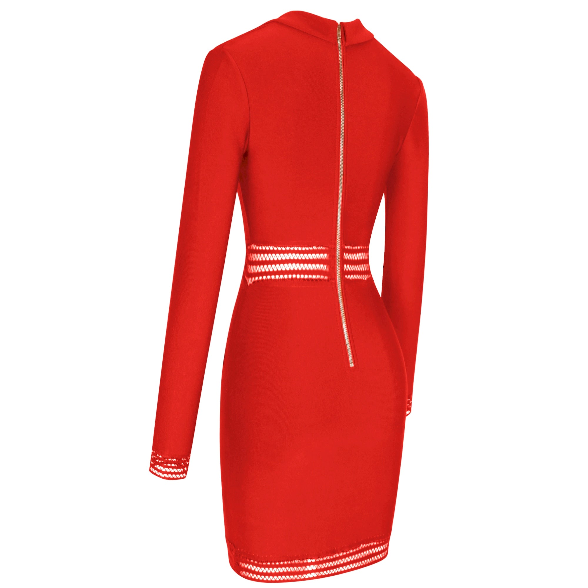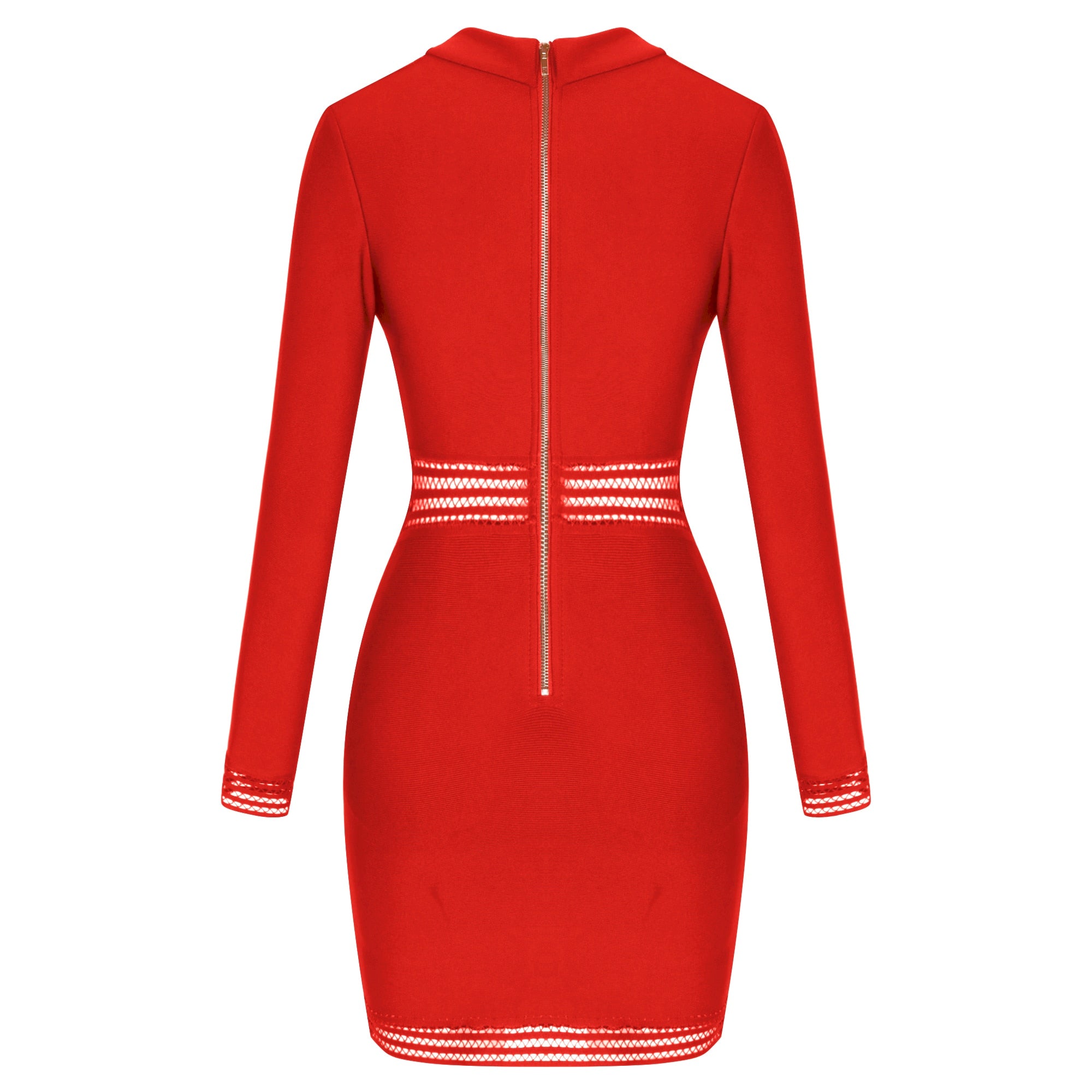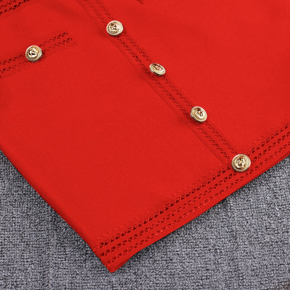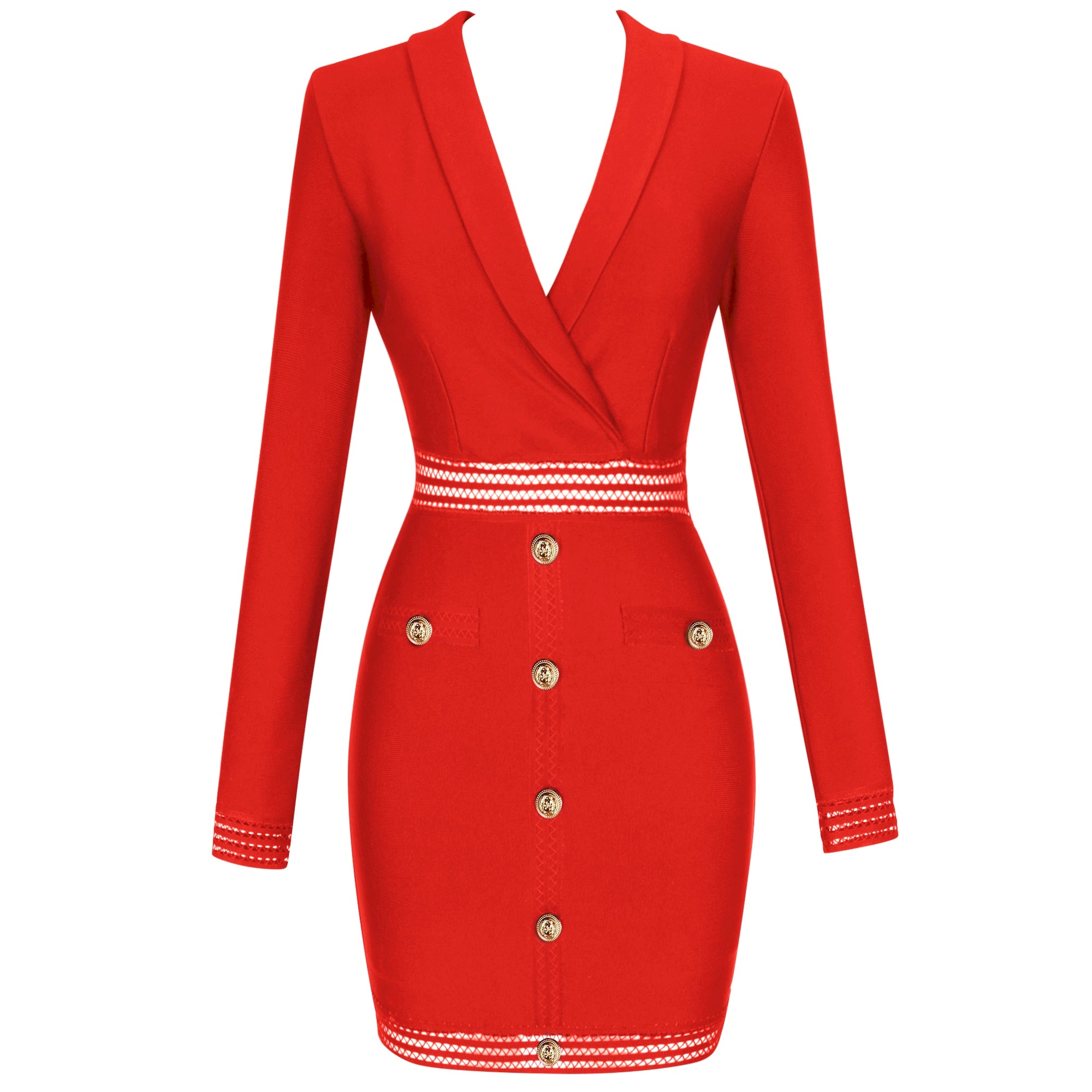 Long-Sleeved V-Neck Mini Dress with Button Decoration, Zipper Closure, and Polyester Material