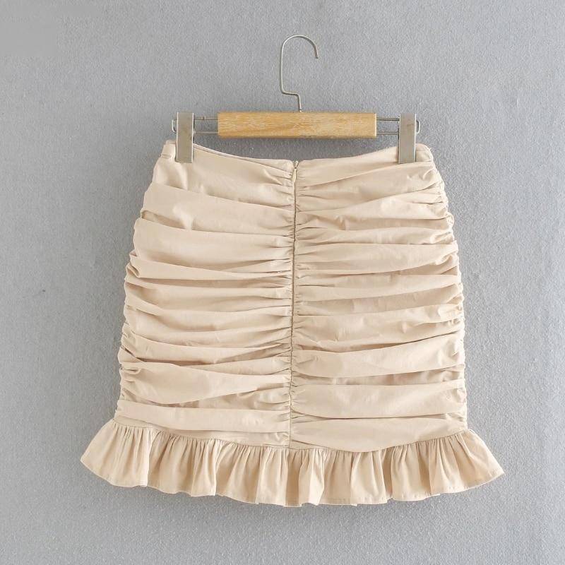 Solid Polyester Mini Skirt with Ruffle Decoration and Pleated Silhouette