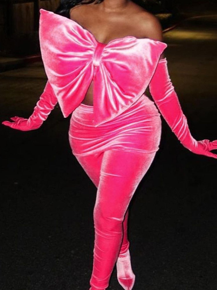 The beauty of these women's skirts is cut from luxurious velvet that creates a stunning look. This set includes high-waist pants and a matching top for a complete ensemble. The bow design is a simple accessory that is sure to add a finishing touch to your ensemble.