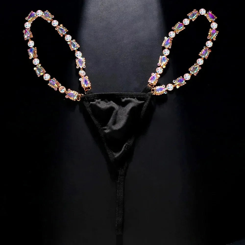 Command attention with our All Eyes Here Thong. Crafted from sleek polyester and adorned with eye-catching rhinestones that catch the light with every move. This daring piece isn't just underwear—it's your secret weapon of seduction. Designed for the bold who aren't afraid to sparkle where it matters most. Wear what makes you feel unstoppable.