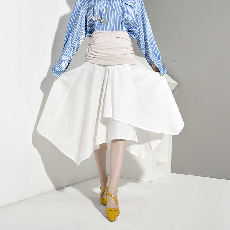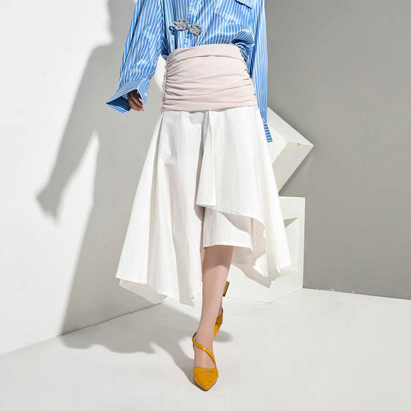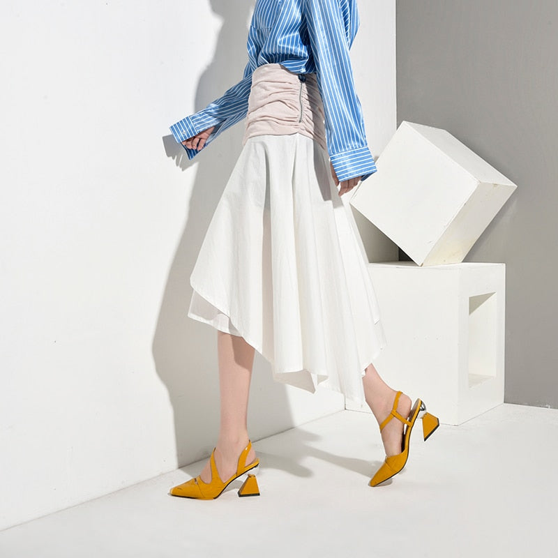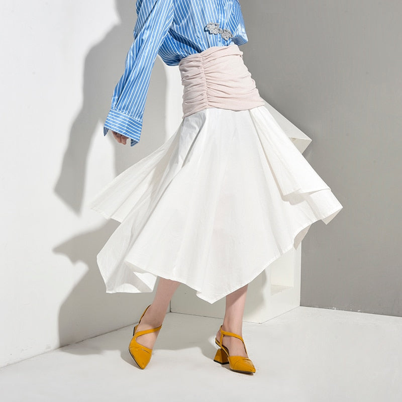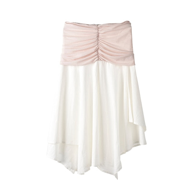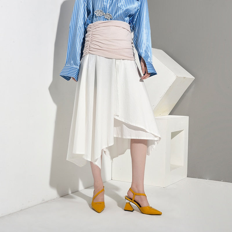 Asymmetric Cotton Midi Dress with Ruched Decoration