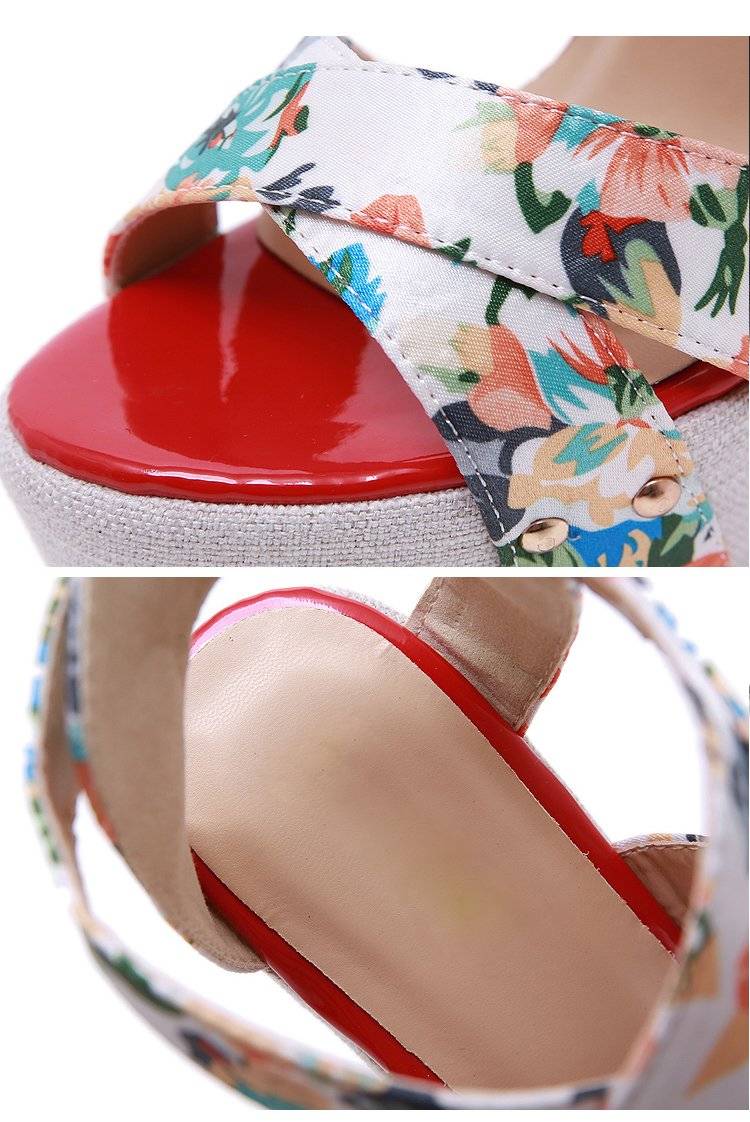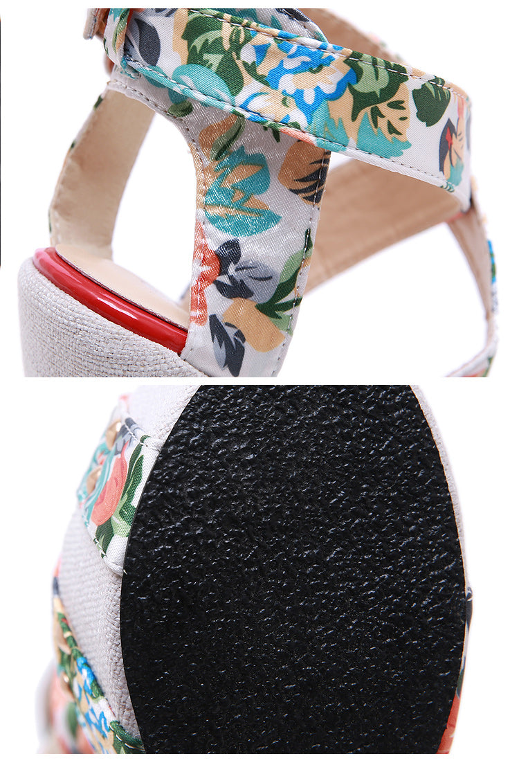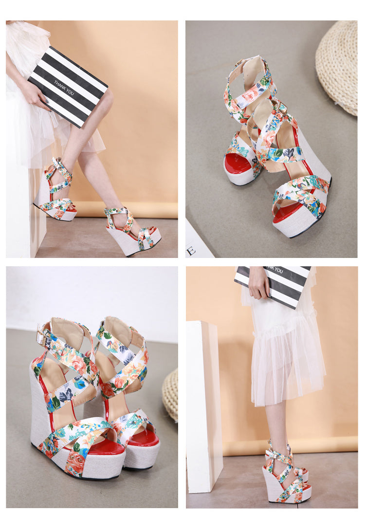 Aneikeh Summer Women Wedges Ankle Strap Print