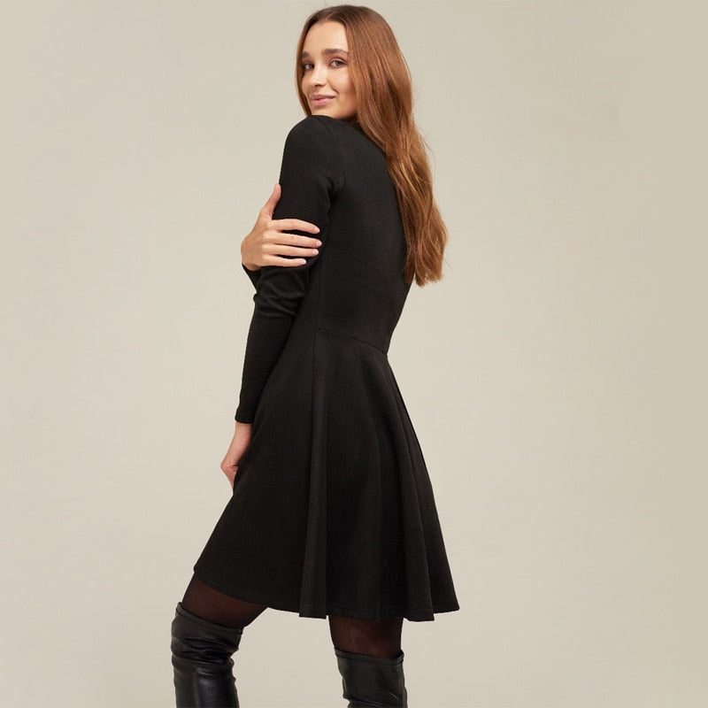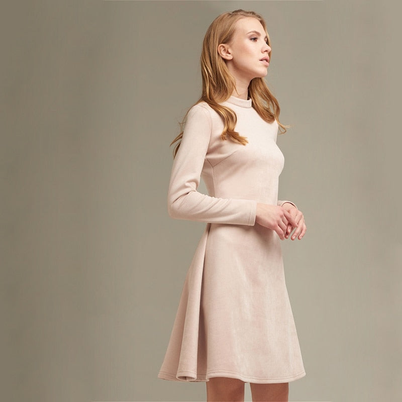 Long Sleeve Solid Mini Dress with O-Neck Collar, A-Line Silhouette, and Velvet Material