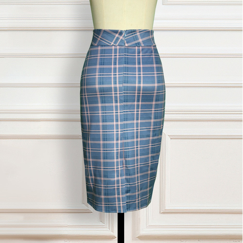 Polyester Cotton Plaid Pattern Pencil Midi Skirt