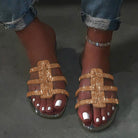 Glitter Sequined Cloth Flat Slip-On Sandal with Gladiator Style Strap