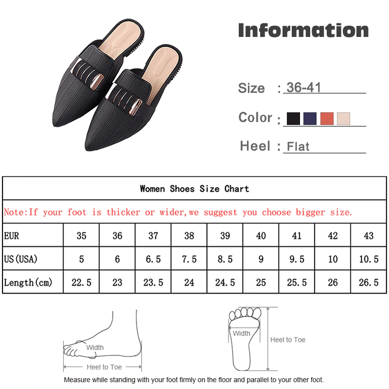 Casual Pointed Toe Square Heels with Stripped Metal Decoration Women Flat Shoes