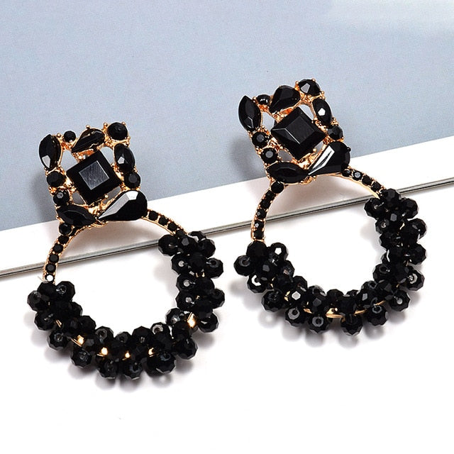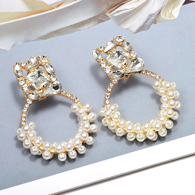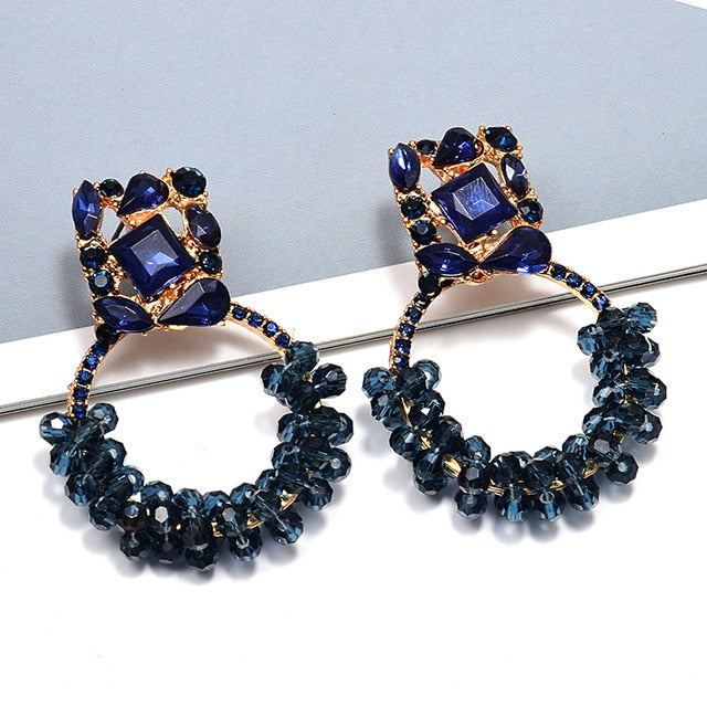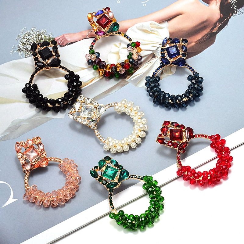Circle Drop Dangle Earrings With Zinc Alloy Material And Rhinestone Decoration