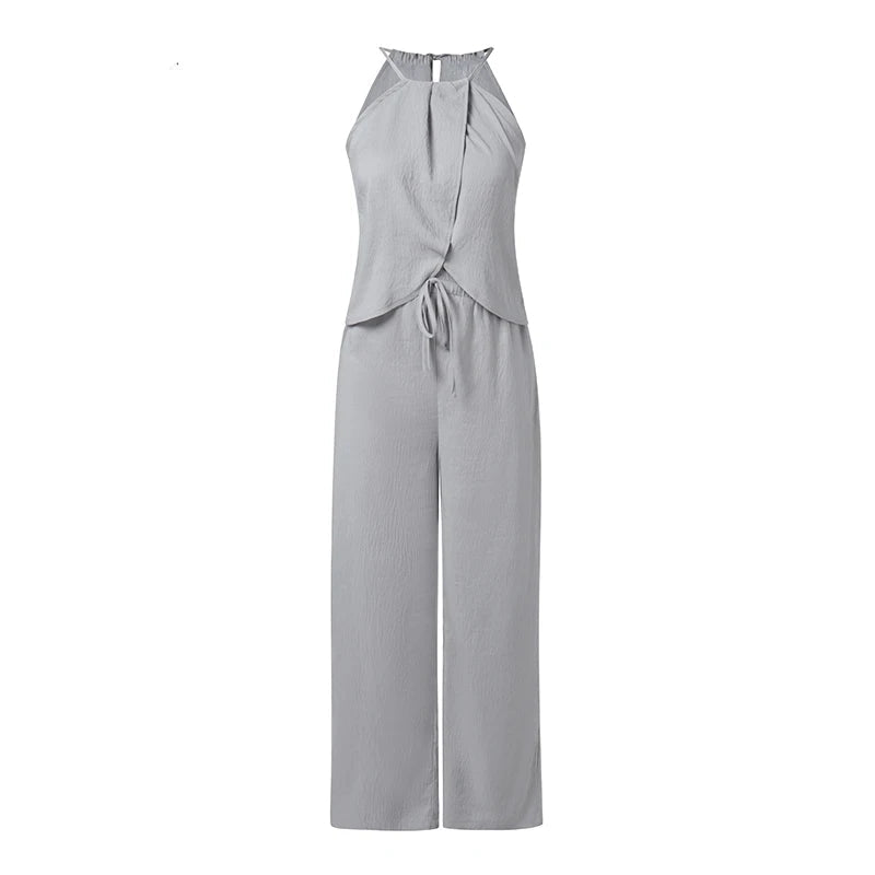 Chic Sleeveless Halter Pants Set