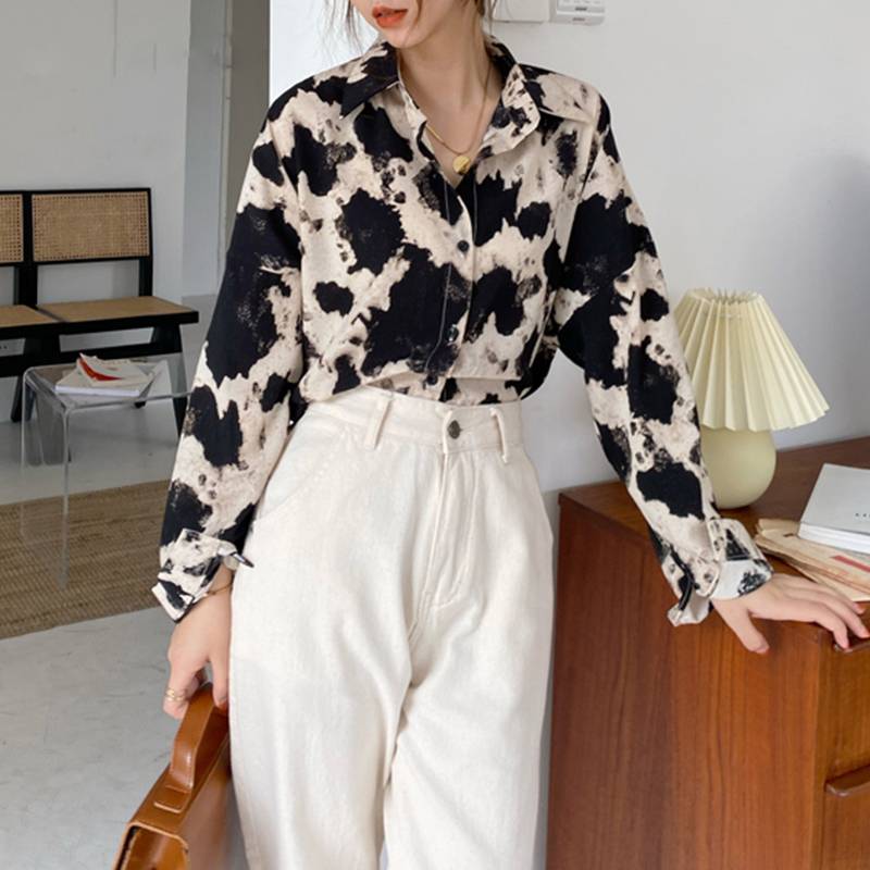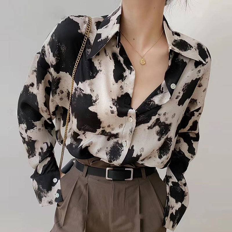 Full-Sleeve Abstract Patterned Shirt with Turn-Down Collar made from Chiffon Polyester Material