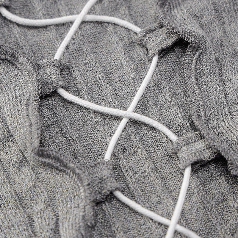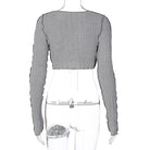 Solid Pattern Knitted Crop Top With Hollow Out Decoration, O-Neck Collar, Long Sleeve, And Polyester Material