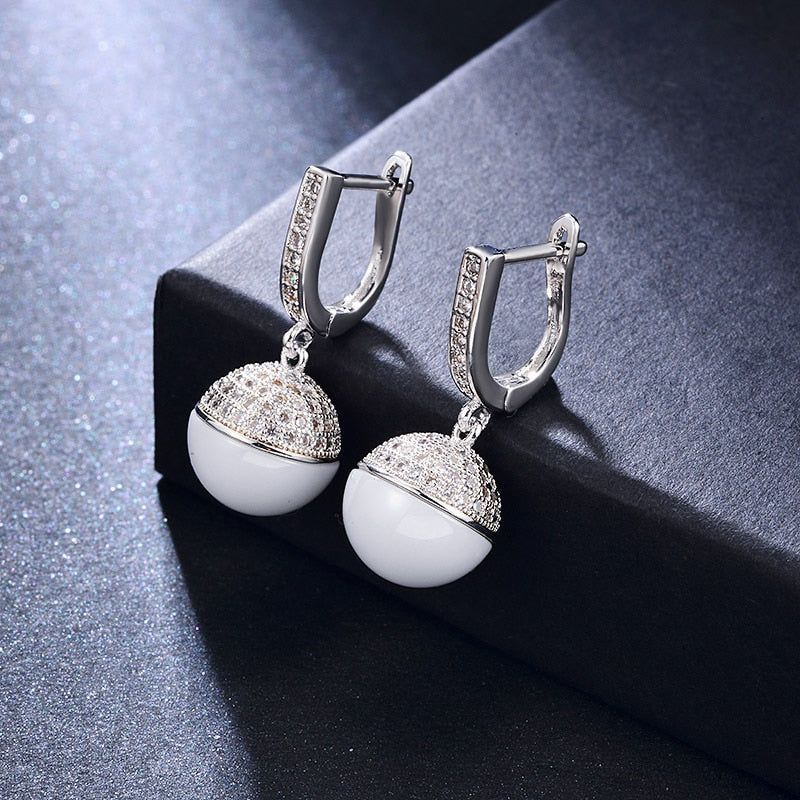 Ceramic Ball Copper Zirconia Latched Back Drop Dangle Earrings