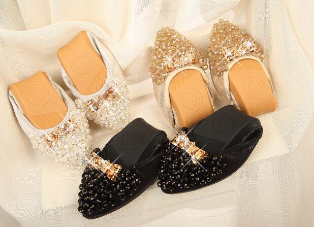 Elegant Rhinestone Sequined Cloth Pointed Toe Elastic Women Flat Shoes