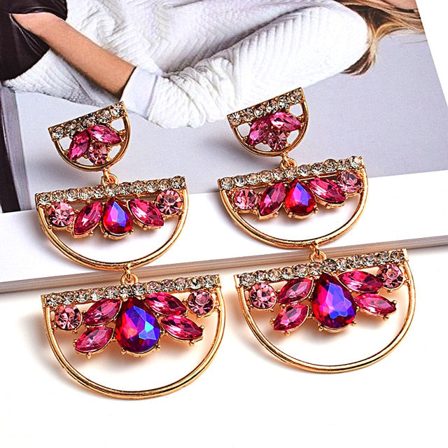 Half Circle Shape Drop Dangle Earrings with Rhinestone and Zinc Alloy Material