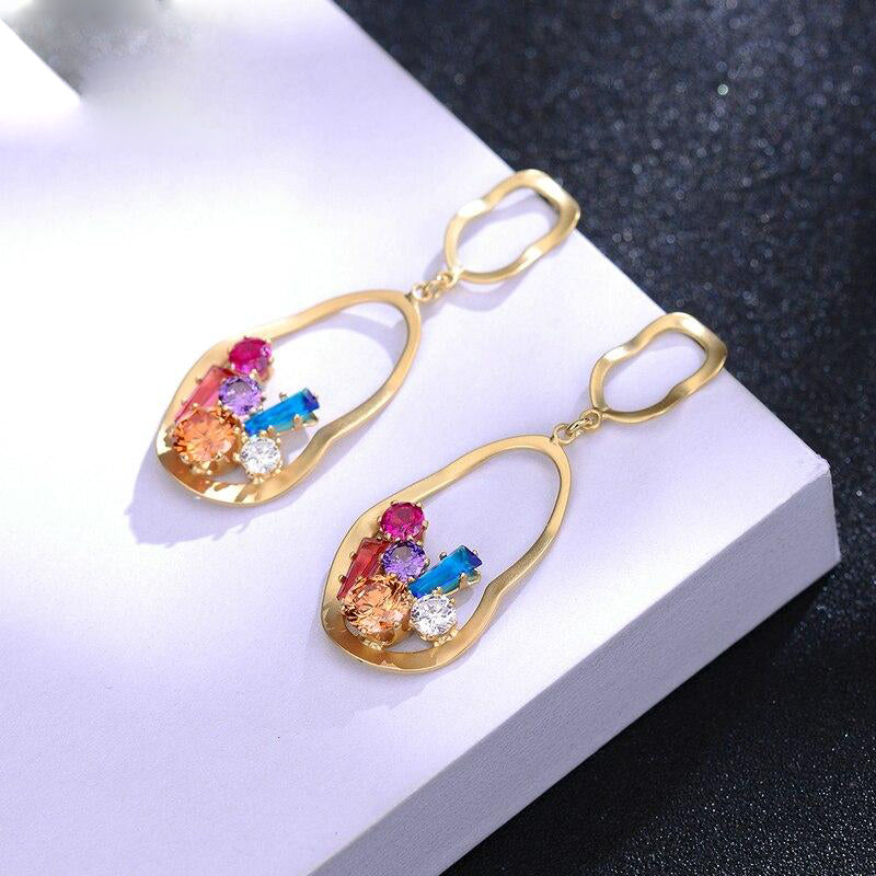 European Geometric Dangle Earrings Copper Crystals Woman Earring