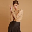 This long sleeve bodysuit ensures that she stays comfortable and stylish this summer. This polyester bodysuit is lightweight, breathable, and quick drying to keep her free from irritation. A classic style color ensures that she'll look great for any occasion. The stylish letter pattern adds a touch of class and sophistication.