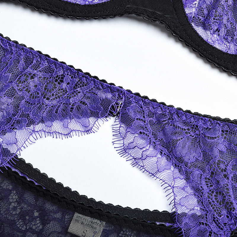 A stylish set of underwired lingerie is the perfect way to look good and feel confident all day long. This is a set of lingerie that is made of soft, durable and comfortable material. The transparent lace adds a touch of elegance, while the subtle details such as the garter belt give it a special, sexy look. The underwired design provides extra support and comfort.