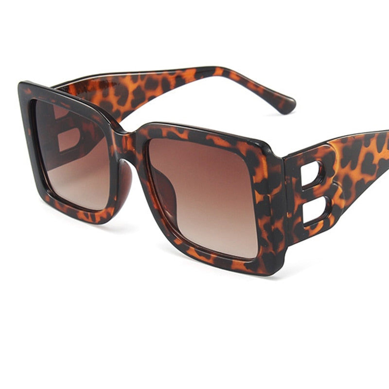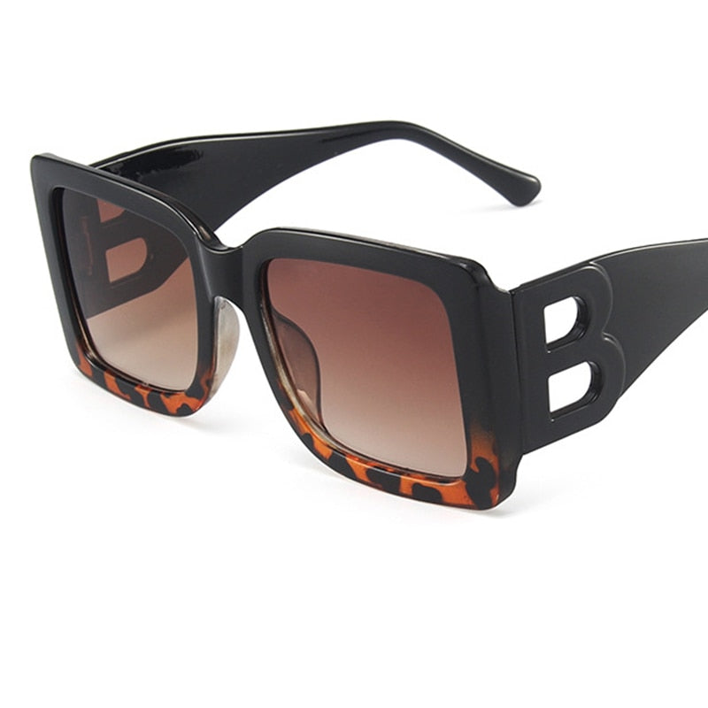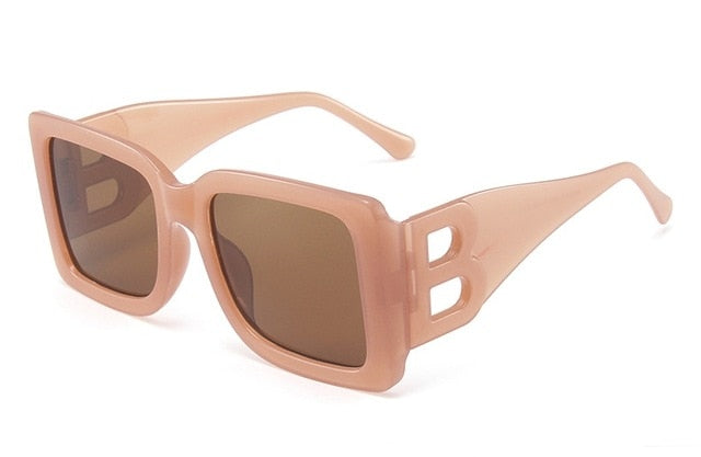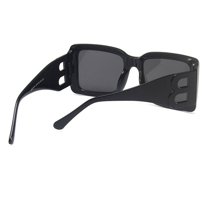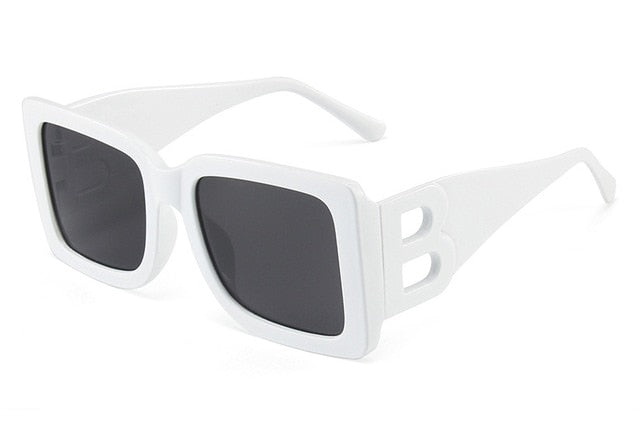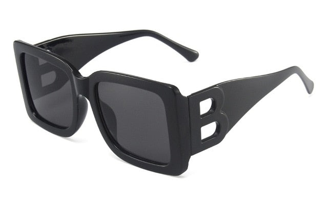 Plastic Frame Square Sunglasses with UV400 Polycarbonate Lens and "B" Letter on the side of Frame.