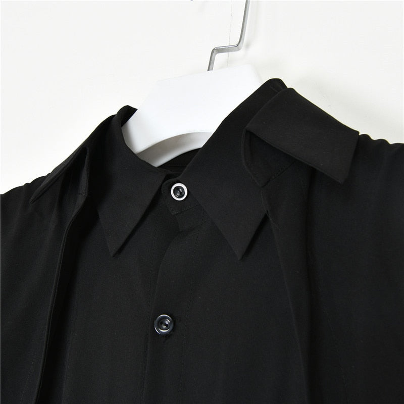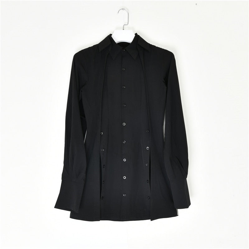Two Layers Look Mini Dress with Turn Down Collar and Button Decoration