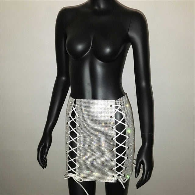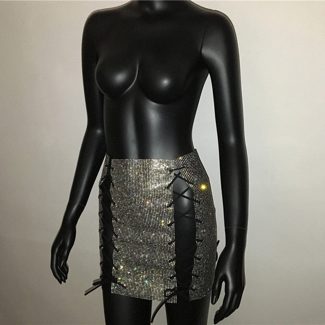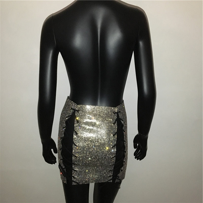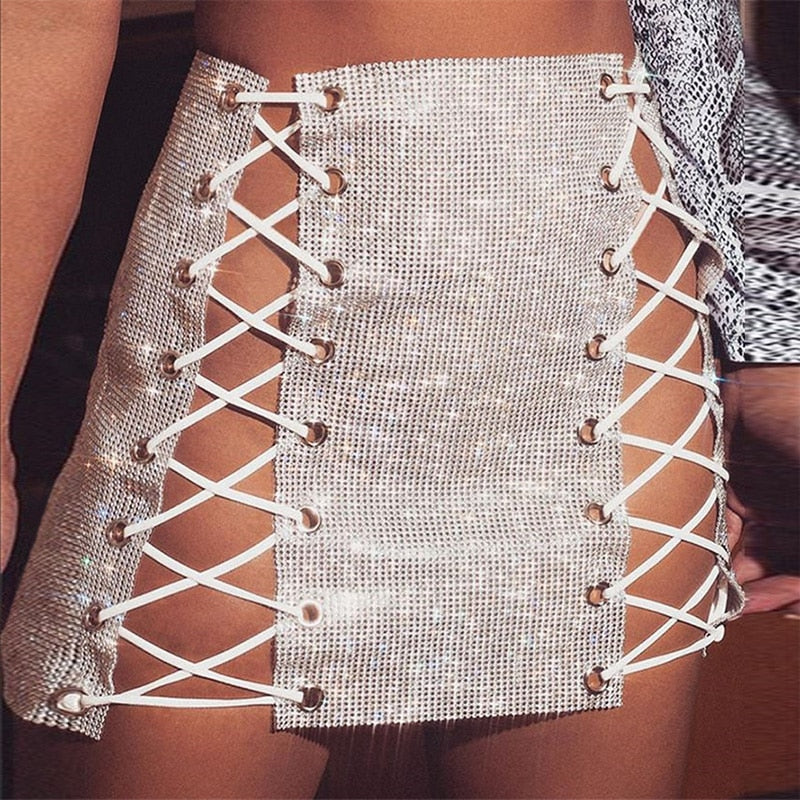 Lanon Polyester A-Line Lace Up Patchwork Light Your Night Mini Skirt
