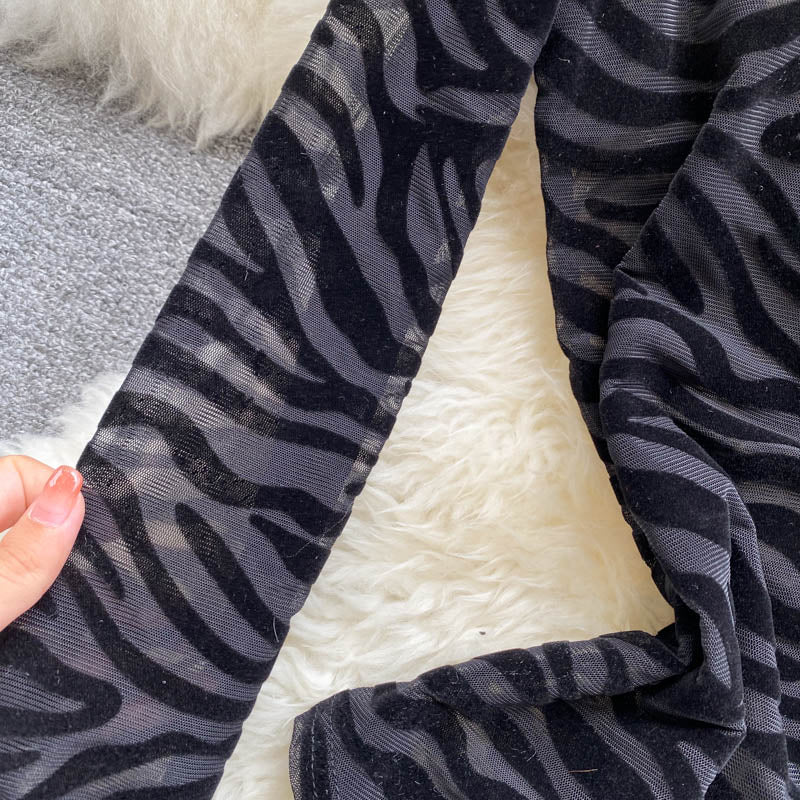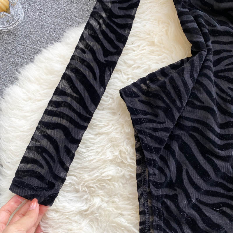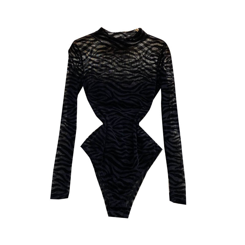 This bodysuit has a unique wave pattern that is sure to get noticed. It's made from a soft fabric that is lightweight and breathable. The see-through design is great for layering and adds a little color to your outfit.