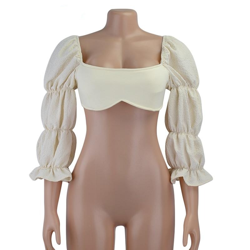 Puff Sleeve Crop Top with Ties Closure and Square Collar