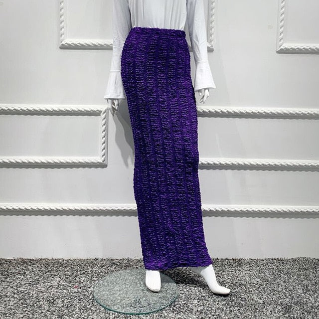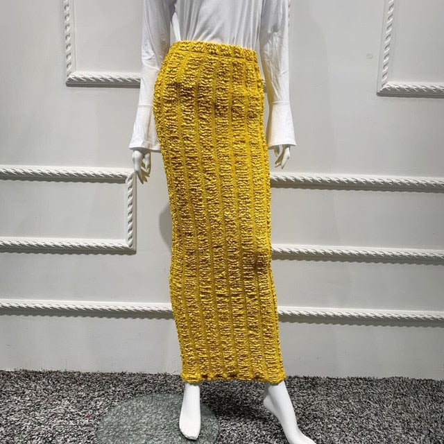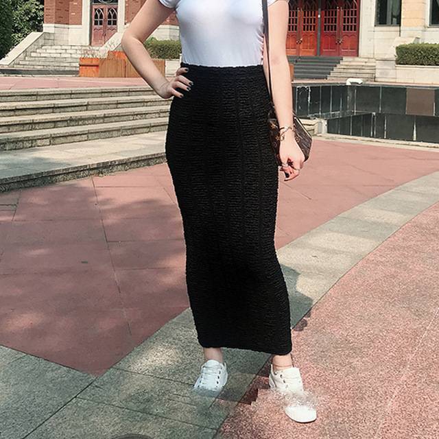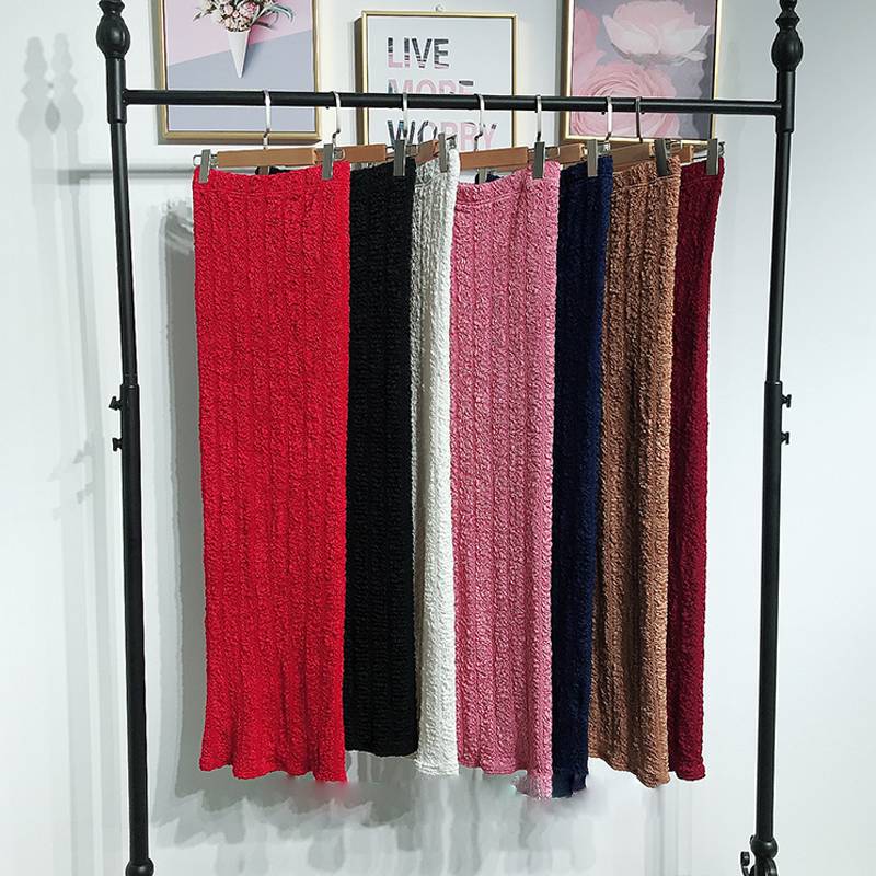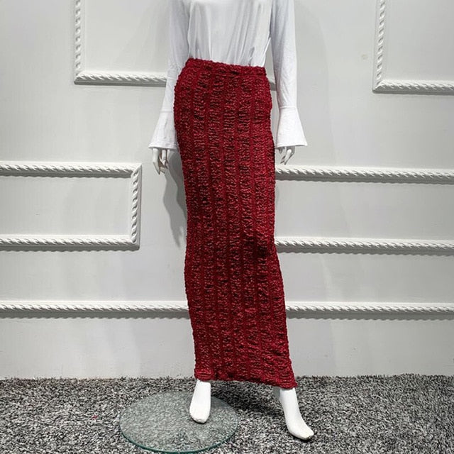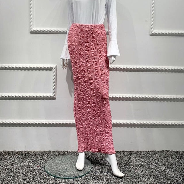 Cotton Lanon Solid Pattern Ankle Length Pencil Skirt