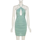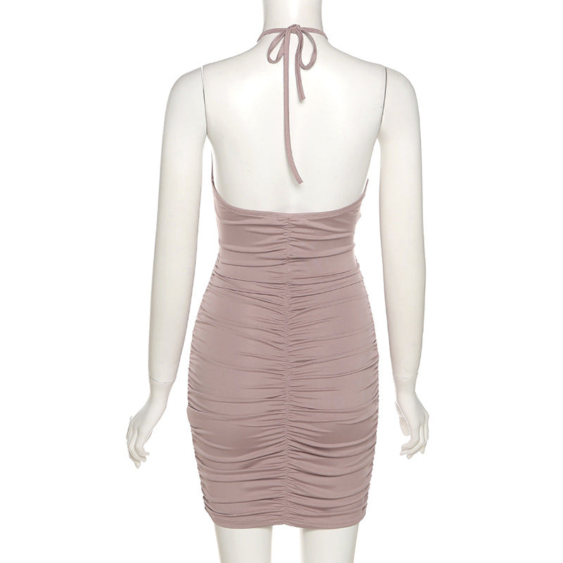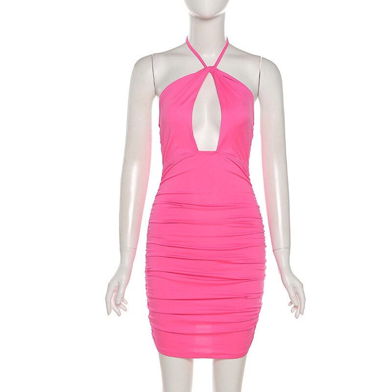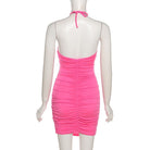 Style meets comfort in this cute and stylish mini dress that is sure to spice up your casual wardrobe. The ruched design on the back is great for dressing up or down. A cute and playful halter neckline is the perfect way to show off your figure.