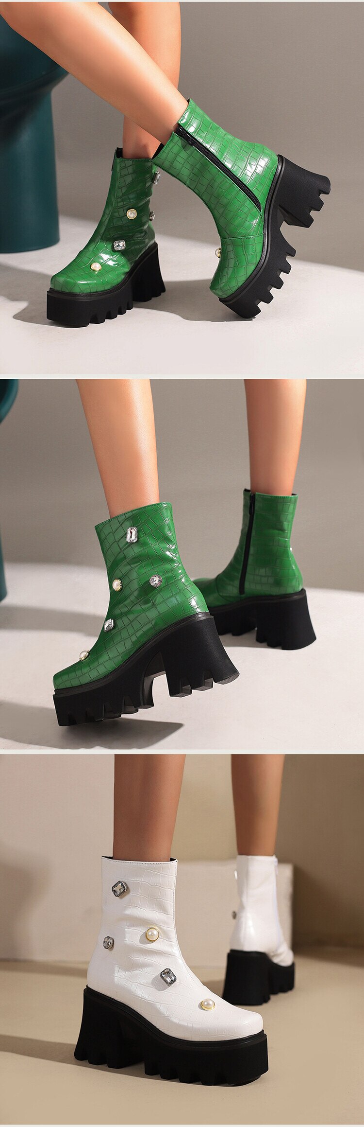 These unique and trendy women's boots are sure to turn heads. Featuring a chic ankle cut and animal skin pattern, these boots are a great way to show off some stylish rompers. A zipper is included to make getting on and off easy.