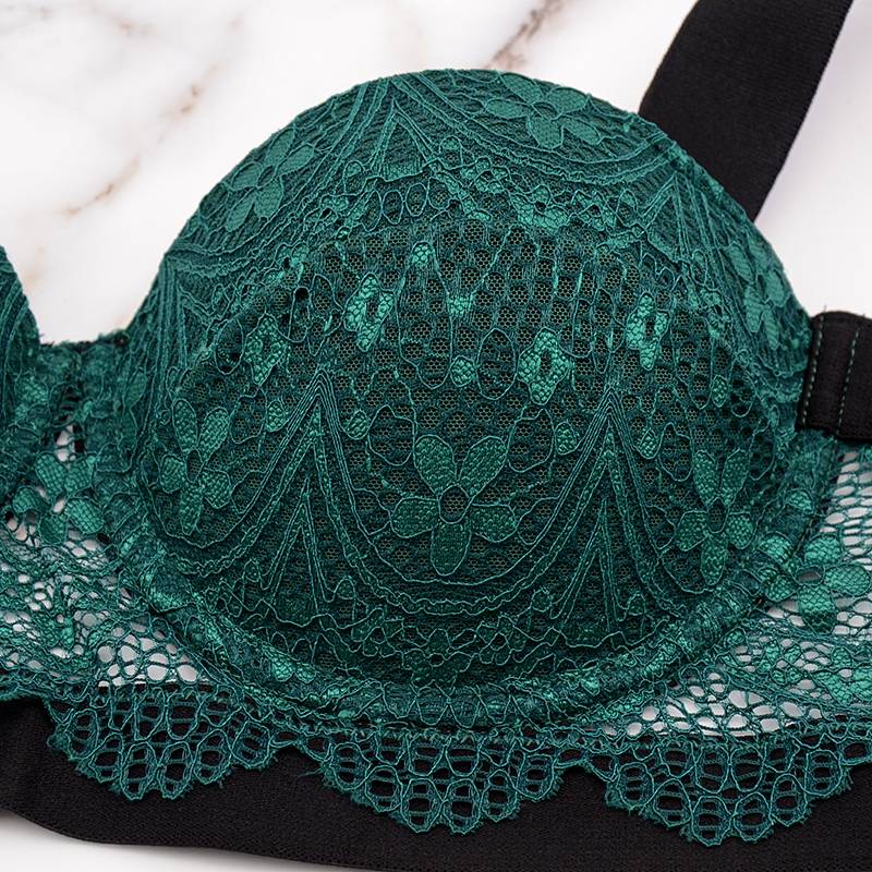 Flower Pattern Lingerie Set with Padded Bra, Back Closure, Lace, and Polyester Material