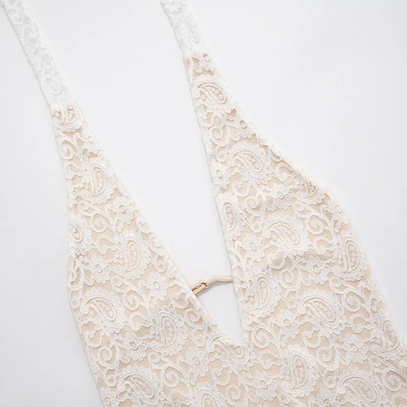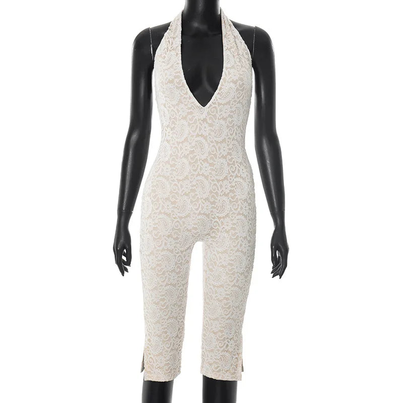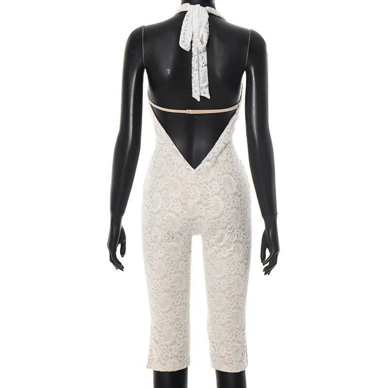 Embrace bold elegance with the Promise in Pearl Jumpsuit. Featuring a striking V-neckline and halter straps, this piece accentuates your shoulders and décolletage for a daring, confident look. Designed to turn heads, its sleek silhouette combines style and attitude effortlessly.